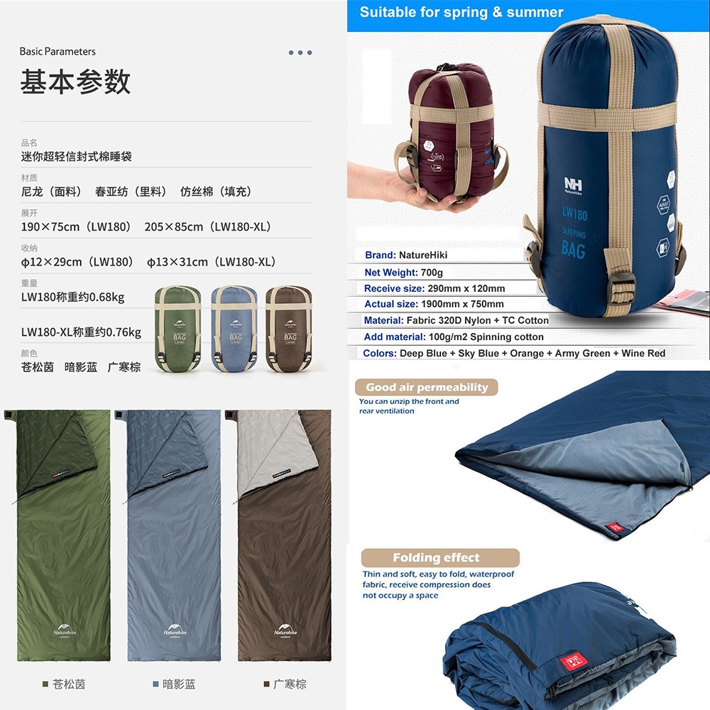 NatureHike Ultralight Portable Outdoor Sleeping Bag Camping Comfortable High Quality Cotton Hiking Travel