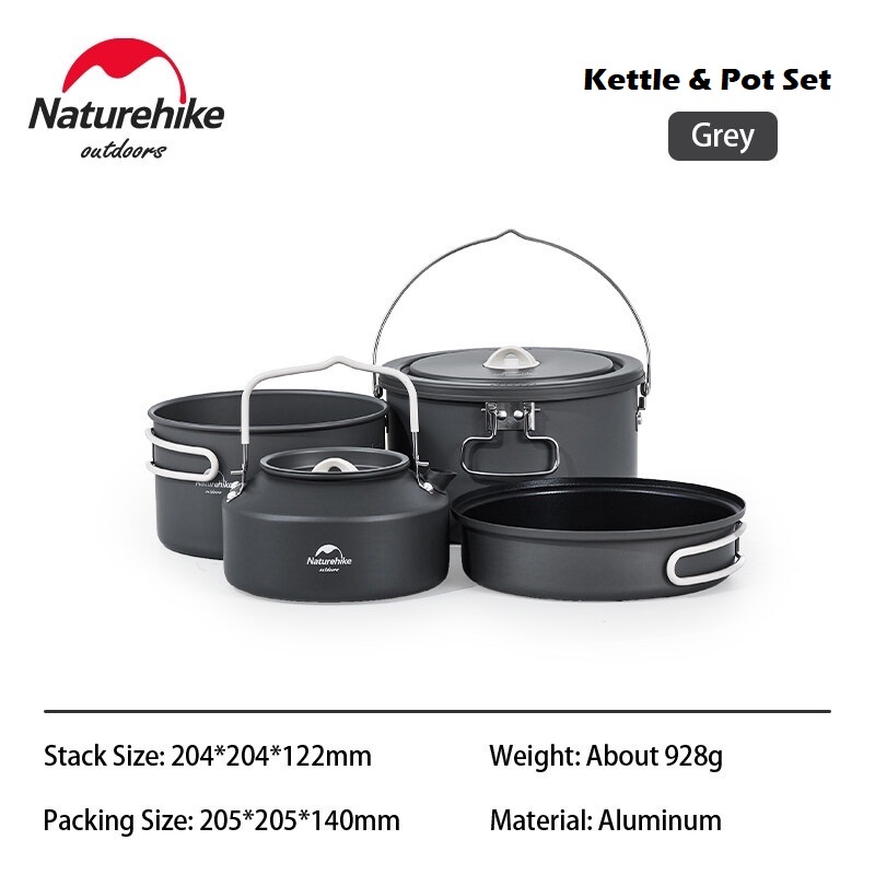 Naturehike Aluminum Alloy Camping Pot Set with Non Stick Pan Outdoor Picnic Hiking Cooking Pan Pot Kettle Cookware