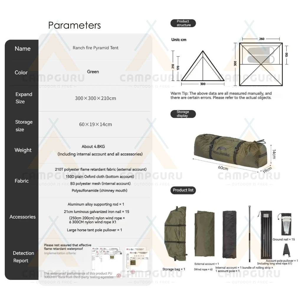 Naturehike Ranch Fire Pyramid Tent 2 person Teepee Tent CNK2300ZP025 Flame Retardant Fabric Anti Mosquito Camping