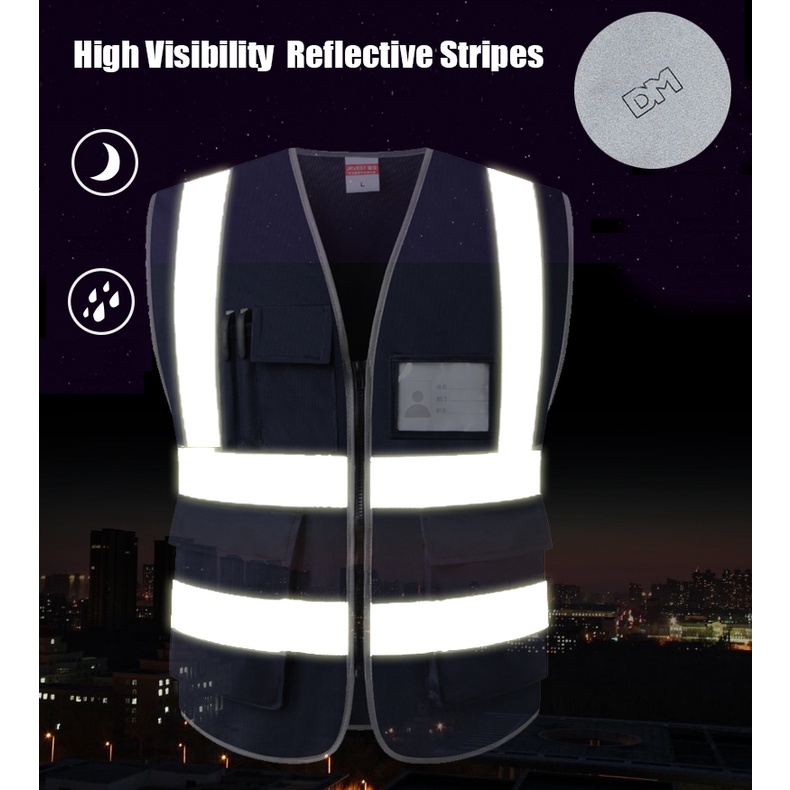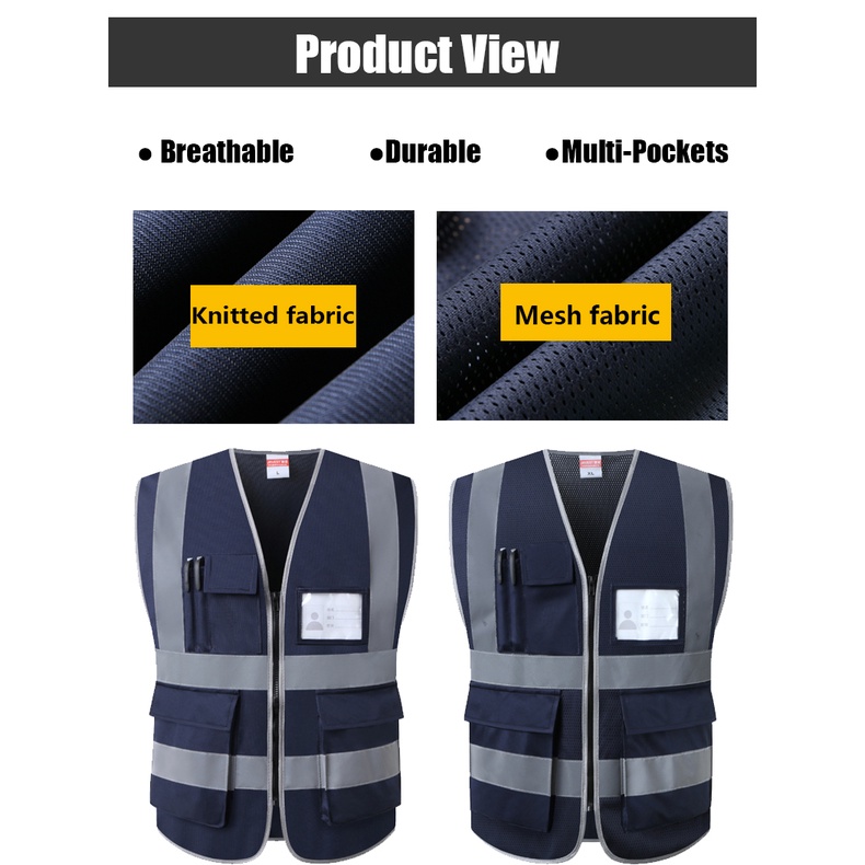 Navy Blue Mesh Safety Vest With Pockets and Zipper
