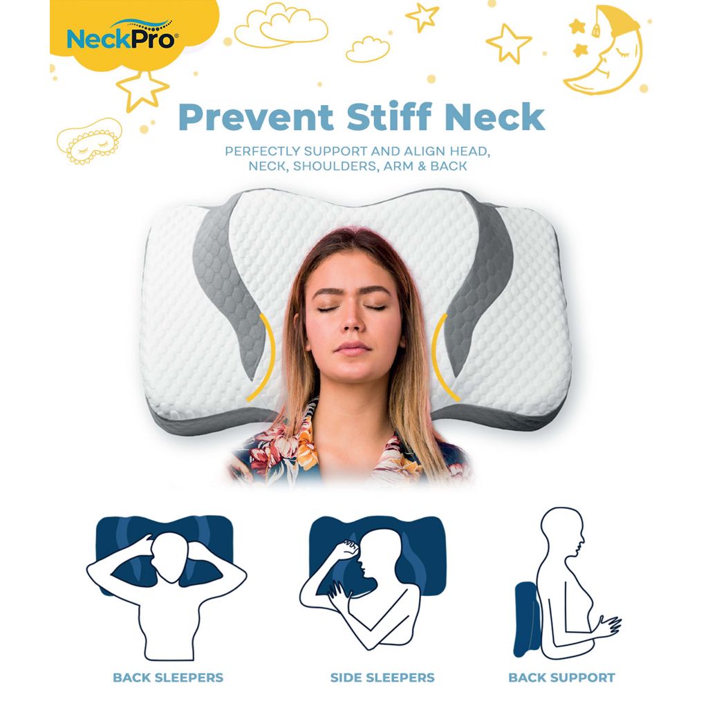 NeckPro Basinov Pillow Multi-Ergo Cervical | Reduce Neck Pain + Back Support + Table Nap | Extreme Cool 6X Pillow Cover