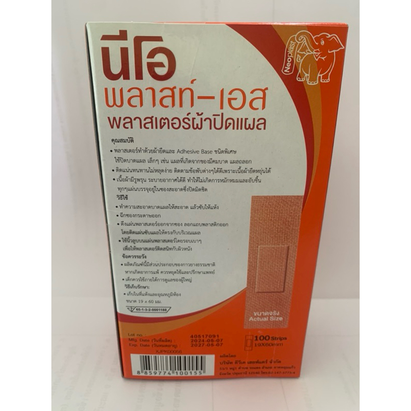 Neoplast-S Elephant Fabric Plaster 100 Sheets Neoplast S Medicated Wound Dressing (Boxed)