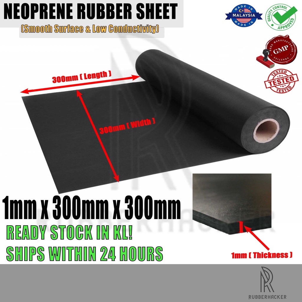 Neoprene Rubber Sheet (CR), Smooth Surface Rubber Sheet, Chloroprene Rubber 1mm(T) x 300mm(W) x 300mm(L) size