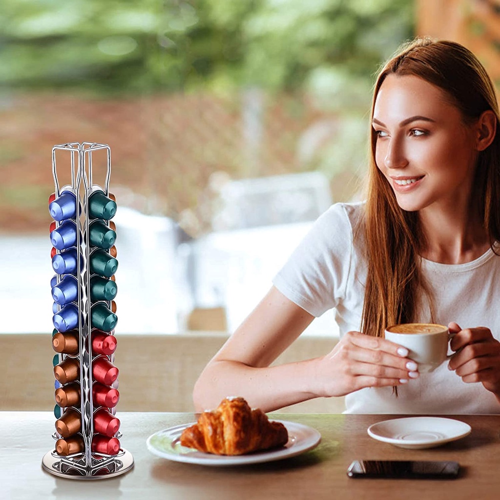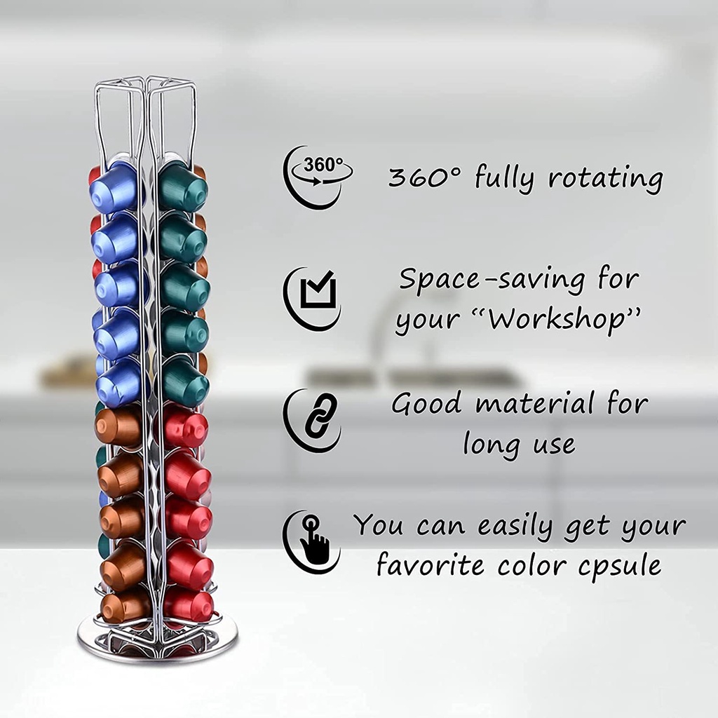 Nespresso Capsule Pods Holder 40pcs capacity rotating silver rack hold organizer