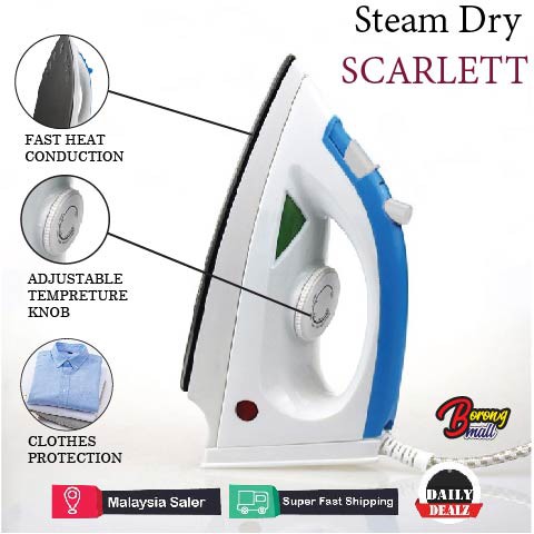 HOT ITEM ‼️ Scarlett YPF-128 Portable Steam Dry Iron Swivel Cord 1200W Household/Seterika Stim