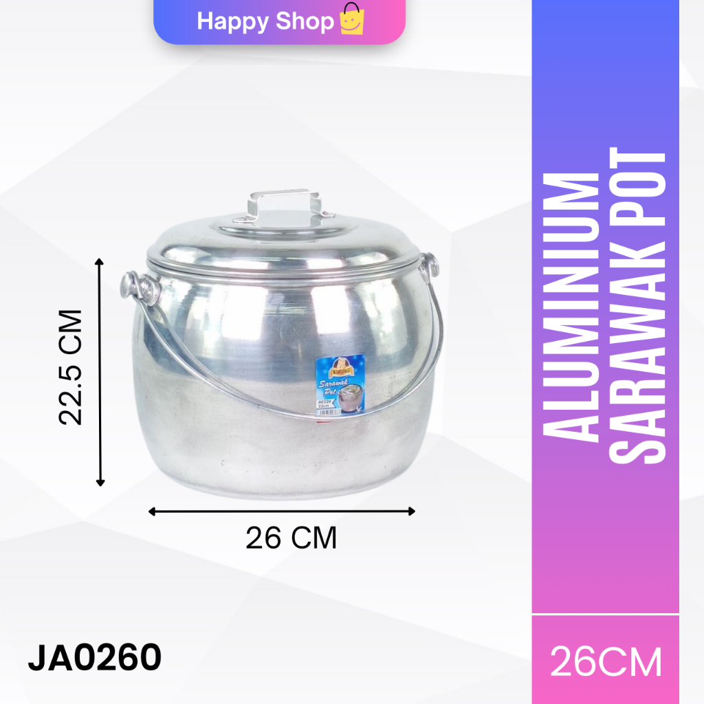 [Cap Kucing}PURE ALUMINIUM SARAWAK POT WITH HANDLE & COVER 18/20/22/28/30/33cm/ALUMINIUM PERIUK MASAK