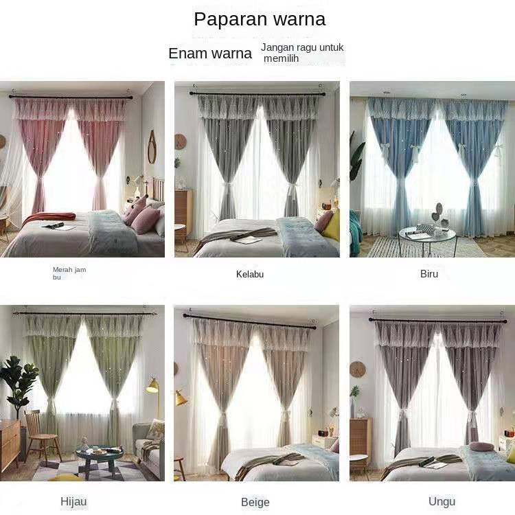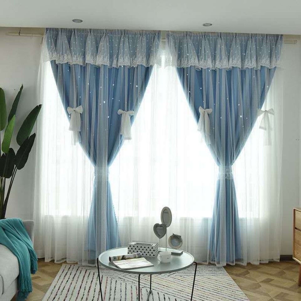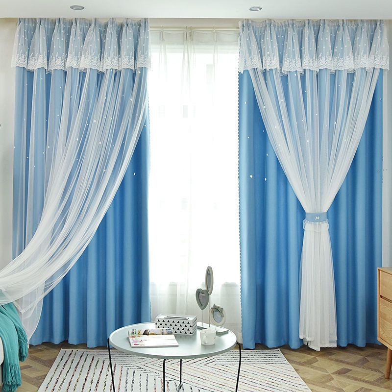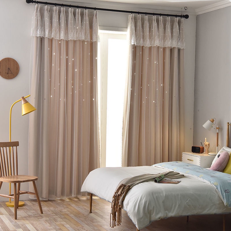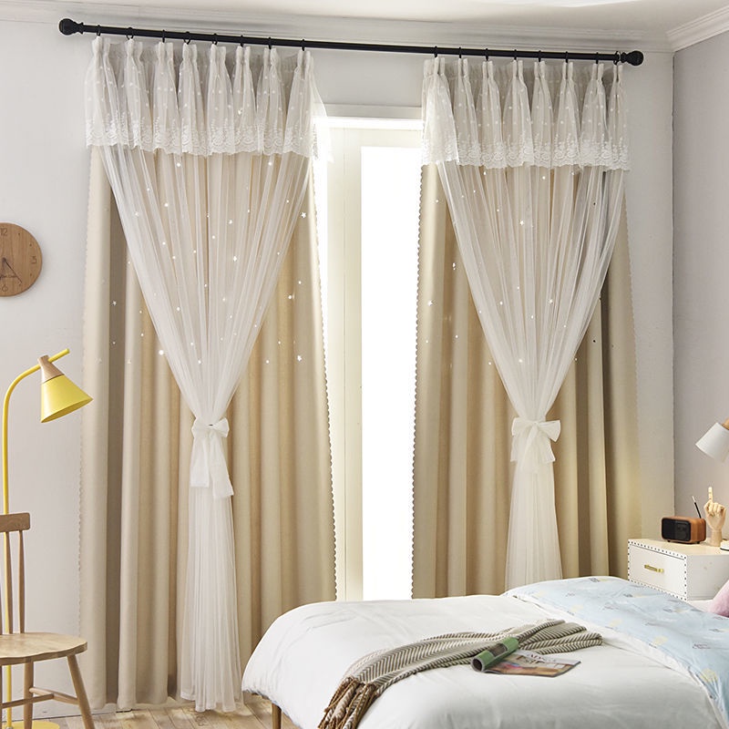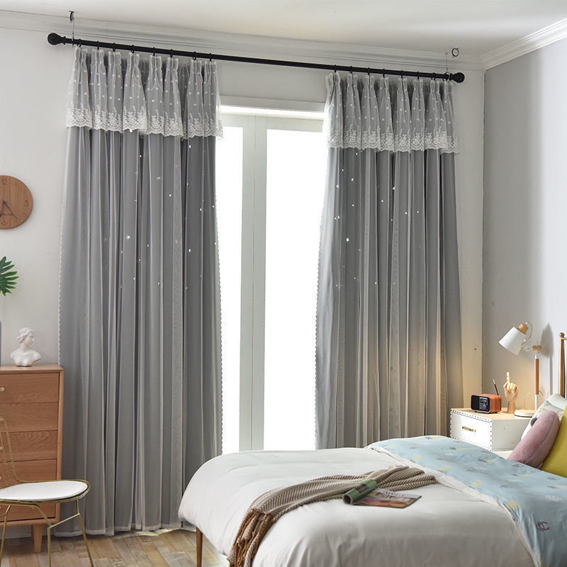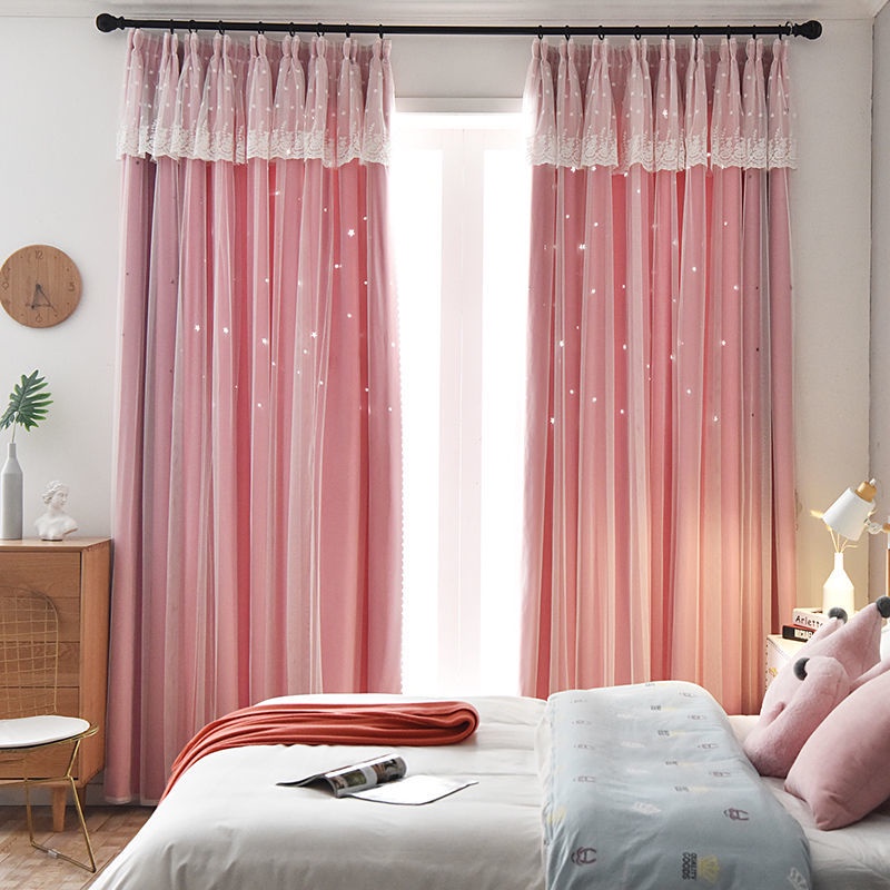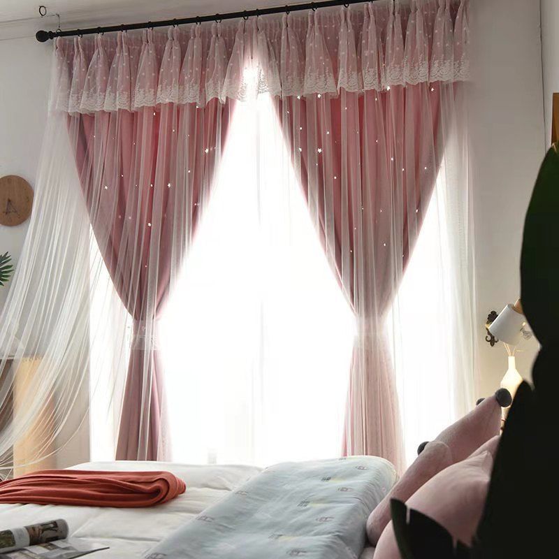 Net red Korean Princess wind double-layer finished window screen curtain, shading bedroom hollow star curtain