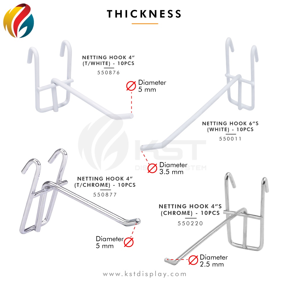Netting Hook Chrome Netting Grid Detail Display Hanging Wire (2"/ 4"/ 6"/ 8"/ 10"/12") 10PCS
