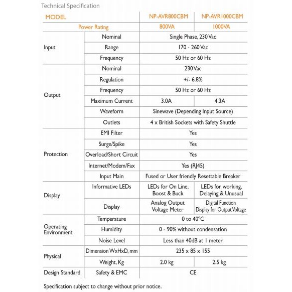 Neuropower AVR (Automatic Voltage Regulator) CBM Series 800 - 1000VA