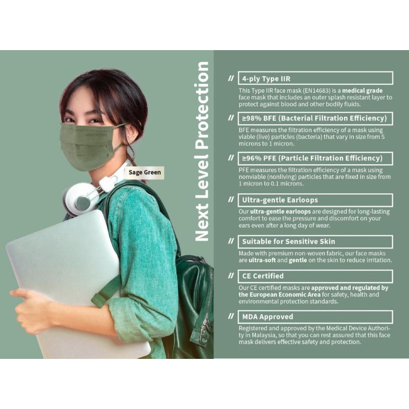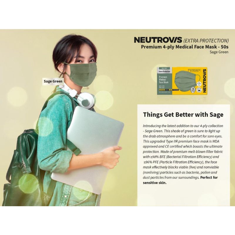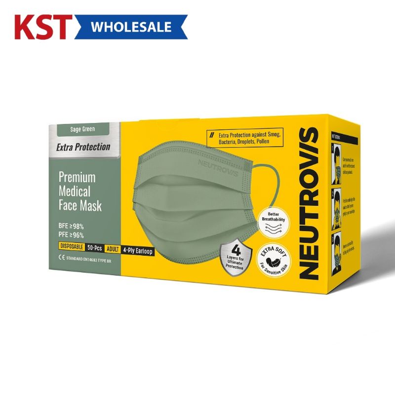 Neutrovis Premium 4-Ply Medical Face Mask 50's - Sage Green