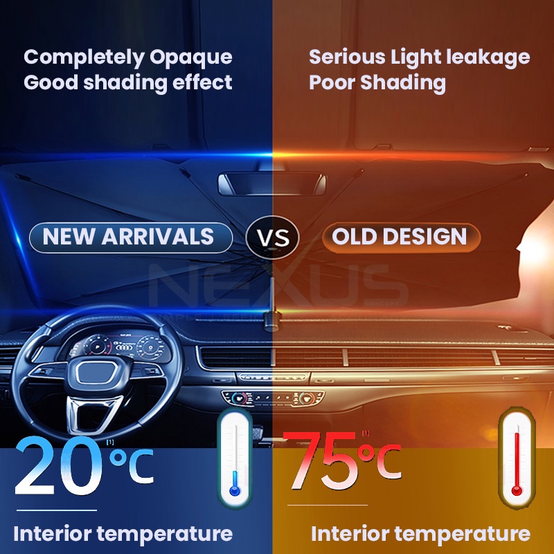Neuxs Car Sun Shade Front Windscreen UV Rays Heat Sun Visor Umbrella Car Parasol Car Sun Shade Umbrella Payung Kereta