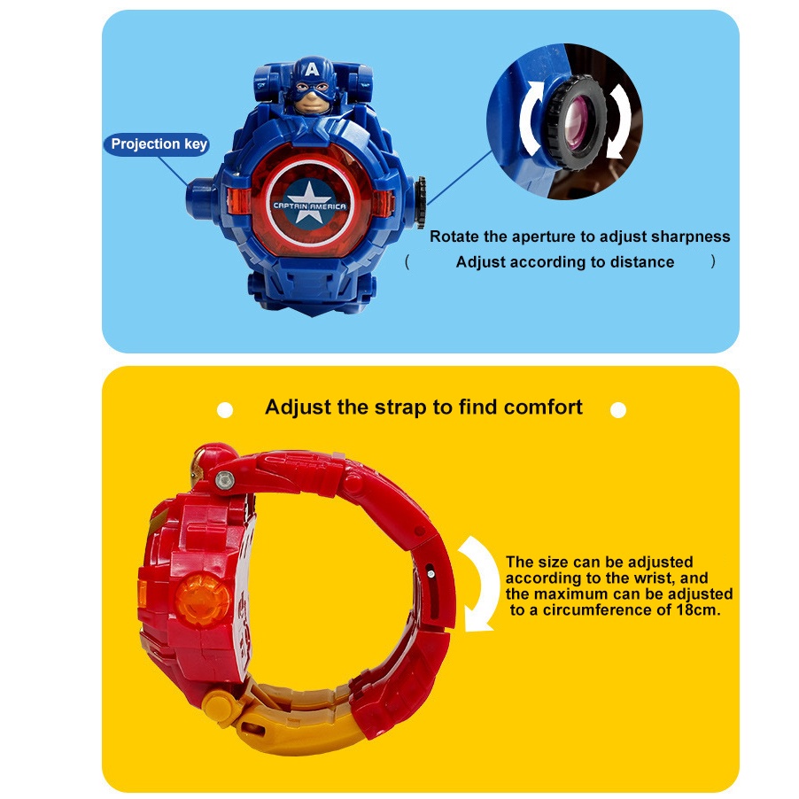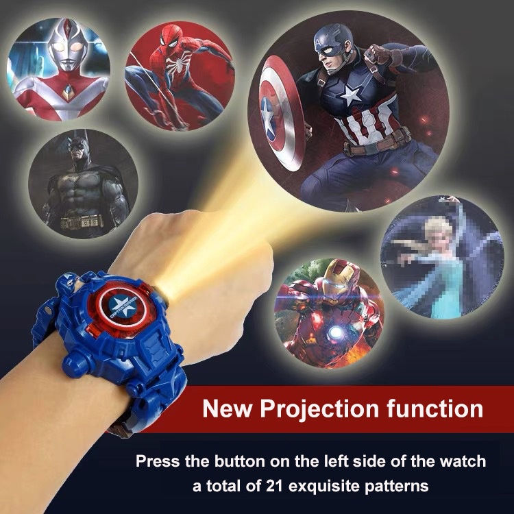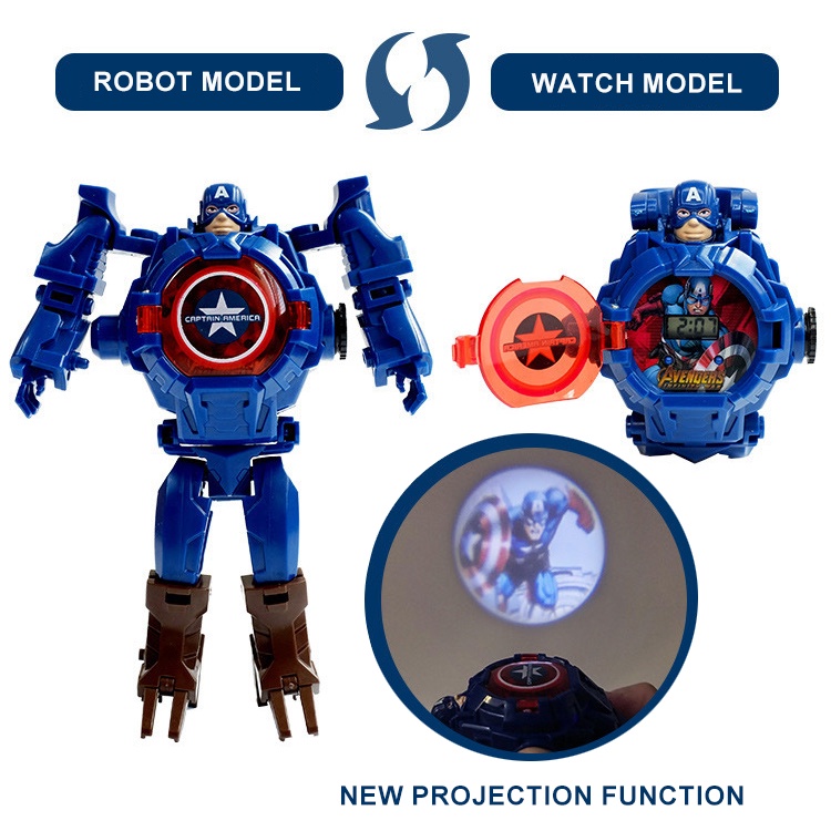 New 2in1 Projector Deformation electronic Watch Toy Children Watch Digital Avengers kids Robot Watch Spiderman IronMan Frozen Ultraman Watch Toy Kids Gifts