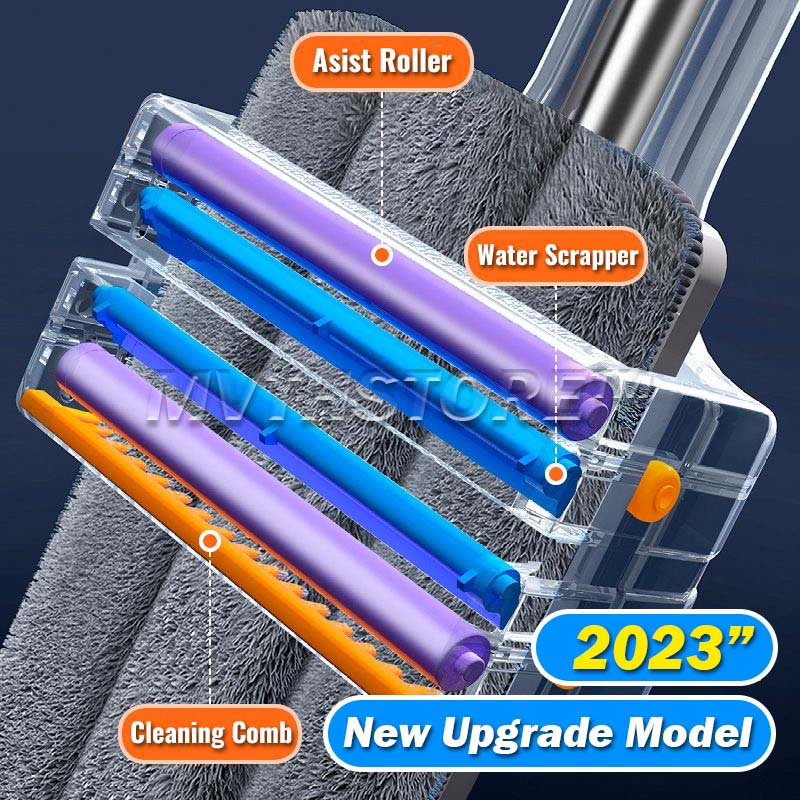 New 45CM Squeeze Mop Heavy Duty XL Size Mop Hands Free Self-Wringing Microfiber Pads Flat Cleaning Mop Mop Lantai
