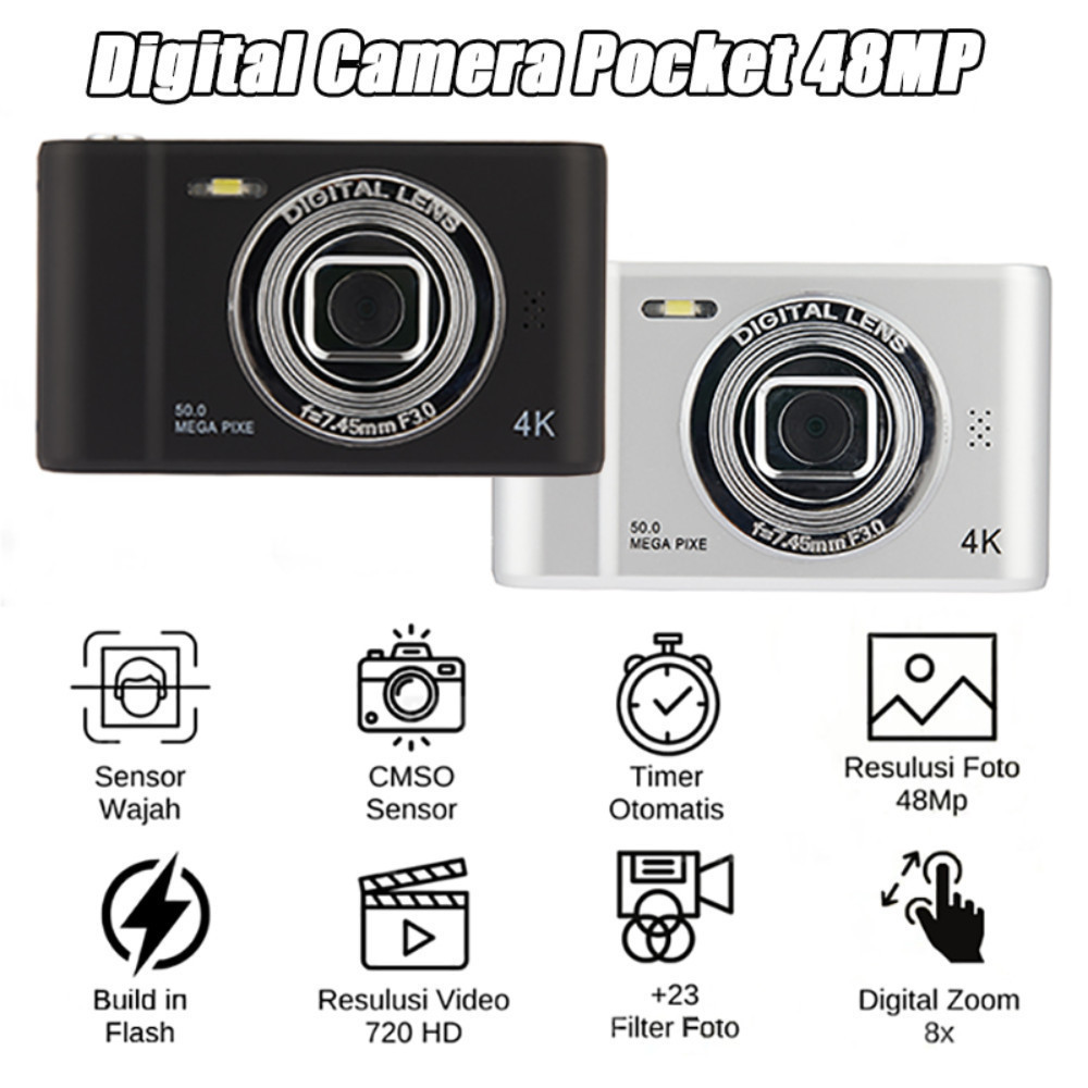 New 48MP Pocket Digital Camera with 16x Zoom for Students, Retro Style Mini Camera for Selfies, 1080P CCD Digicam