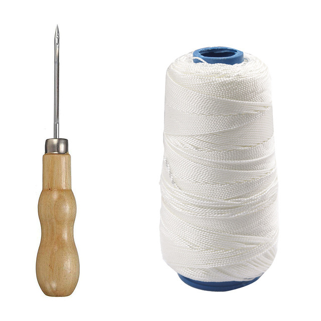 New 50/300M Nylon Sewing Thread Leather Sewing Waxed Thread & Wooden Handle Sewing Awl for Repair Shoes Hand Stitching Sewing Tools