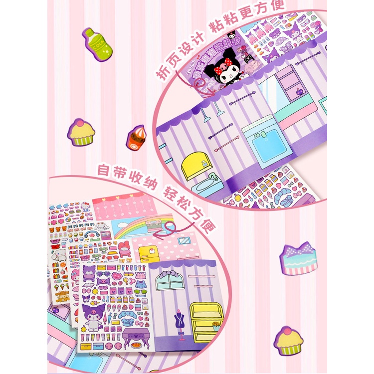 New 6 scenarios Hello Kitty Kulomi Stickers Cute Sanrio Students Happy Bubble Sticker Book Wear Creative Scene Material Quiet Book Kawaii