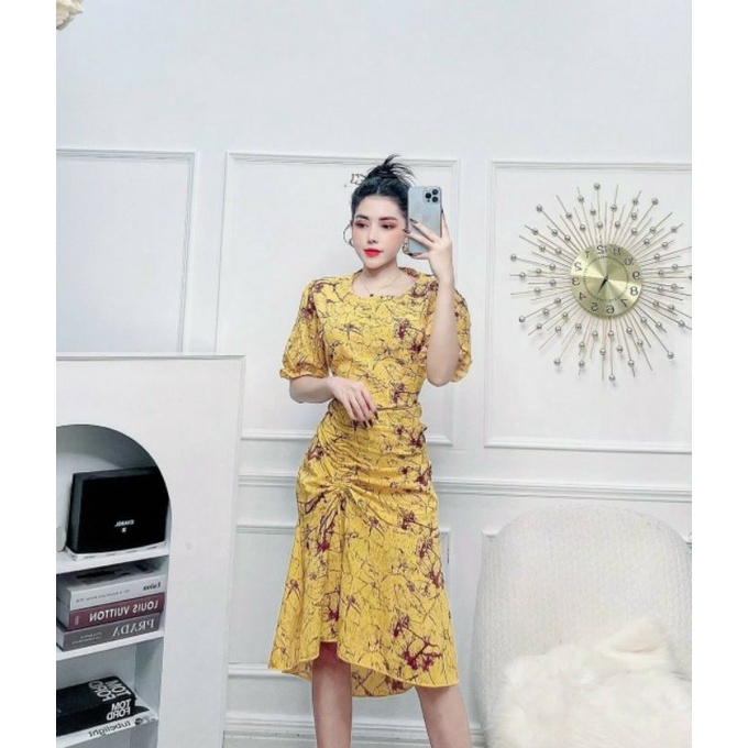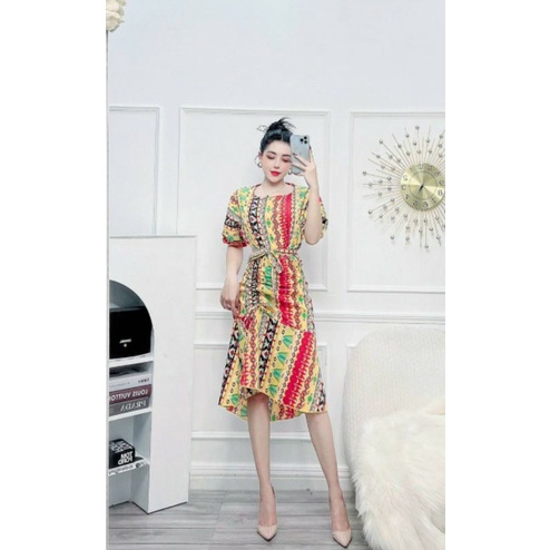 New Arrival Korean Midi Dress Short Sleeved Floral Midi Dress