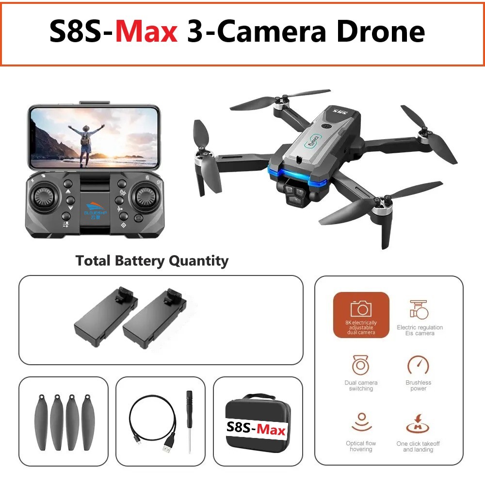 New Arrival S8S Max RC Mini Drone 8K 2.4G WIFI Optical Stream 3 HD Camera Intelligent Obstacle Avoidance Brushless Drones FPV Aerial Photography Toy Gifts
