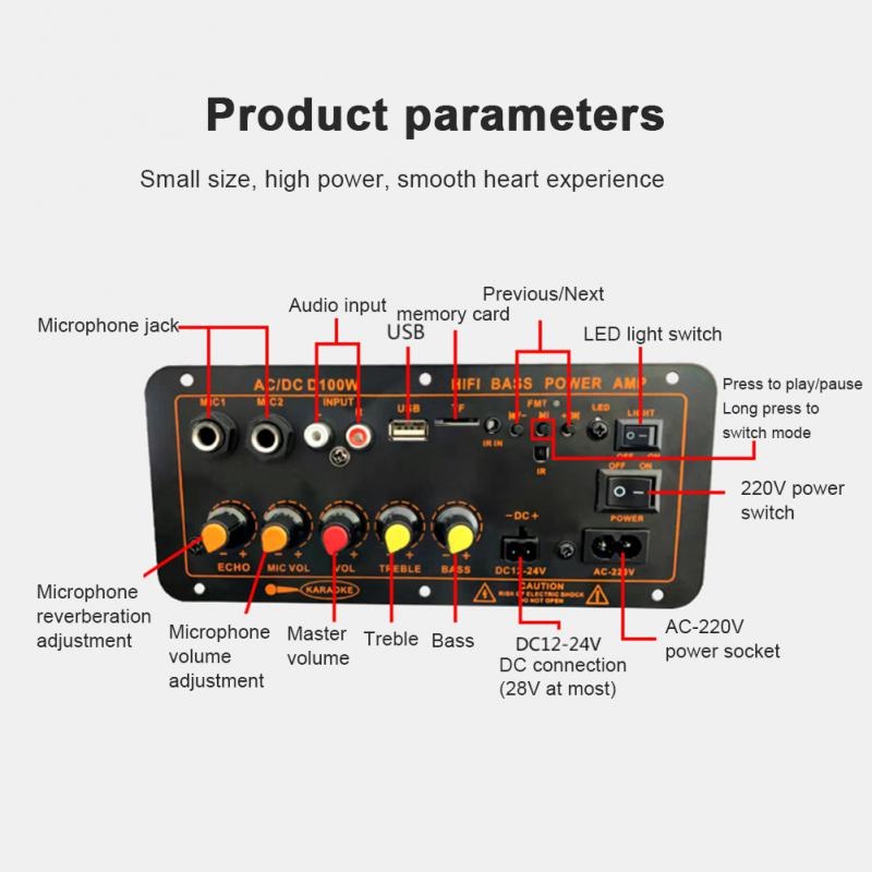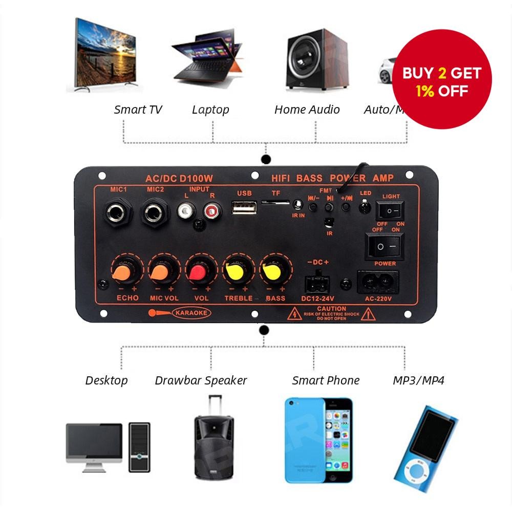 New DIY Bluetooth Audio Amplifier Board, Bluetooth 5.0 D100 Subwoofer, Dual Microphone AMP Module 12V 24V Papan Pembaikan Audio Bluetooth DIY Baru Modul AMP Subwoofer Mikrofon Dwi Bluetooth 5.0 D100 12V 24V