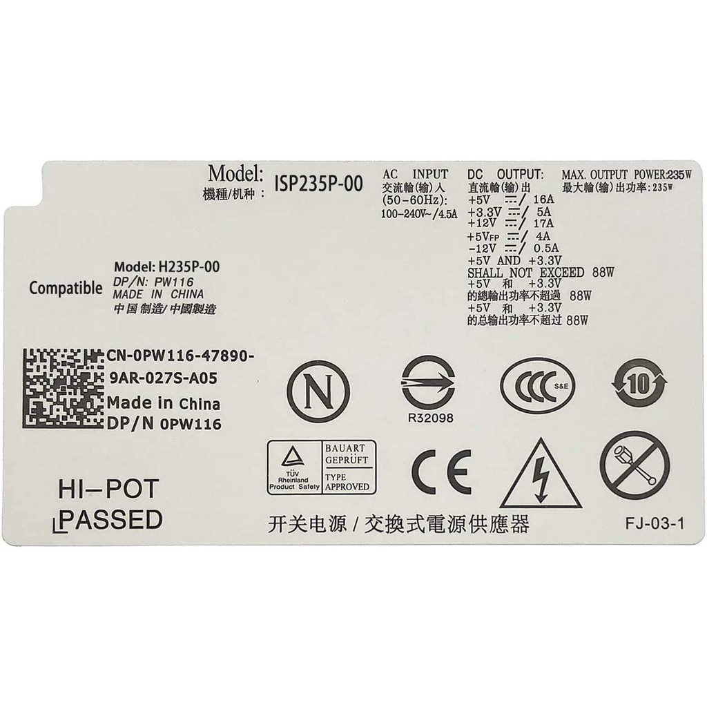 New Dell OptiPlex F235E-00, L235P-01, H235P-00, H235E-00 FR610, 0FR610, PW116 Small Form Factor (SFF) Power Supply