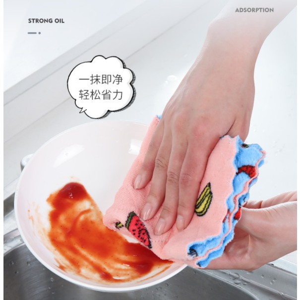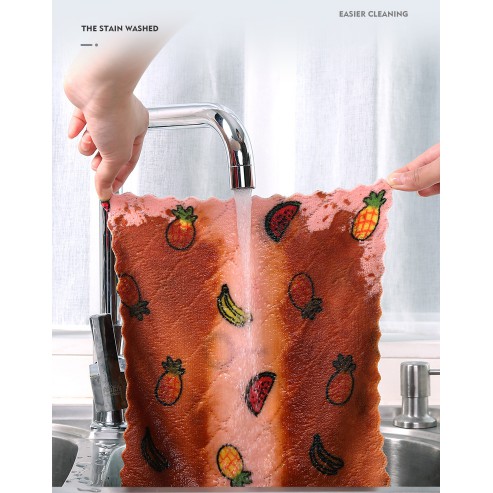 New Extra-large Super Absorbent Superfine Fiber Dishcloth Cartoon Print Dishwashing Cloth Multifunction Doubleface Rag