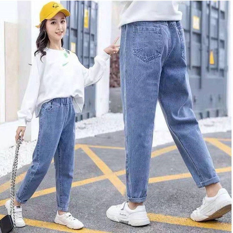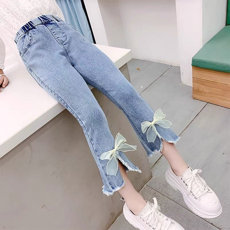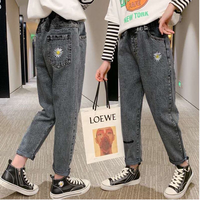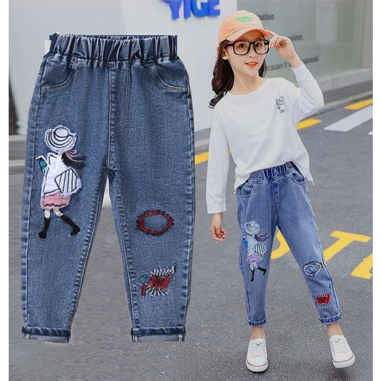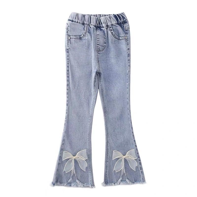 New Fashion Girls Jeans Flare Pants Spring and Autumn Children's Clothing Kids Plum Embroidered Jeans Blue Denim 3-16Years