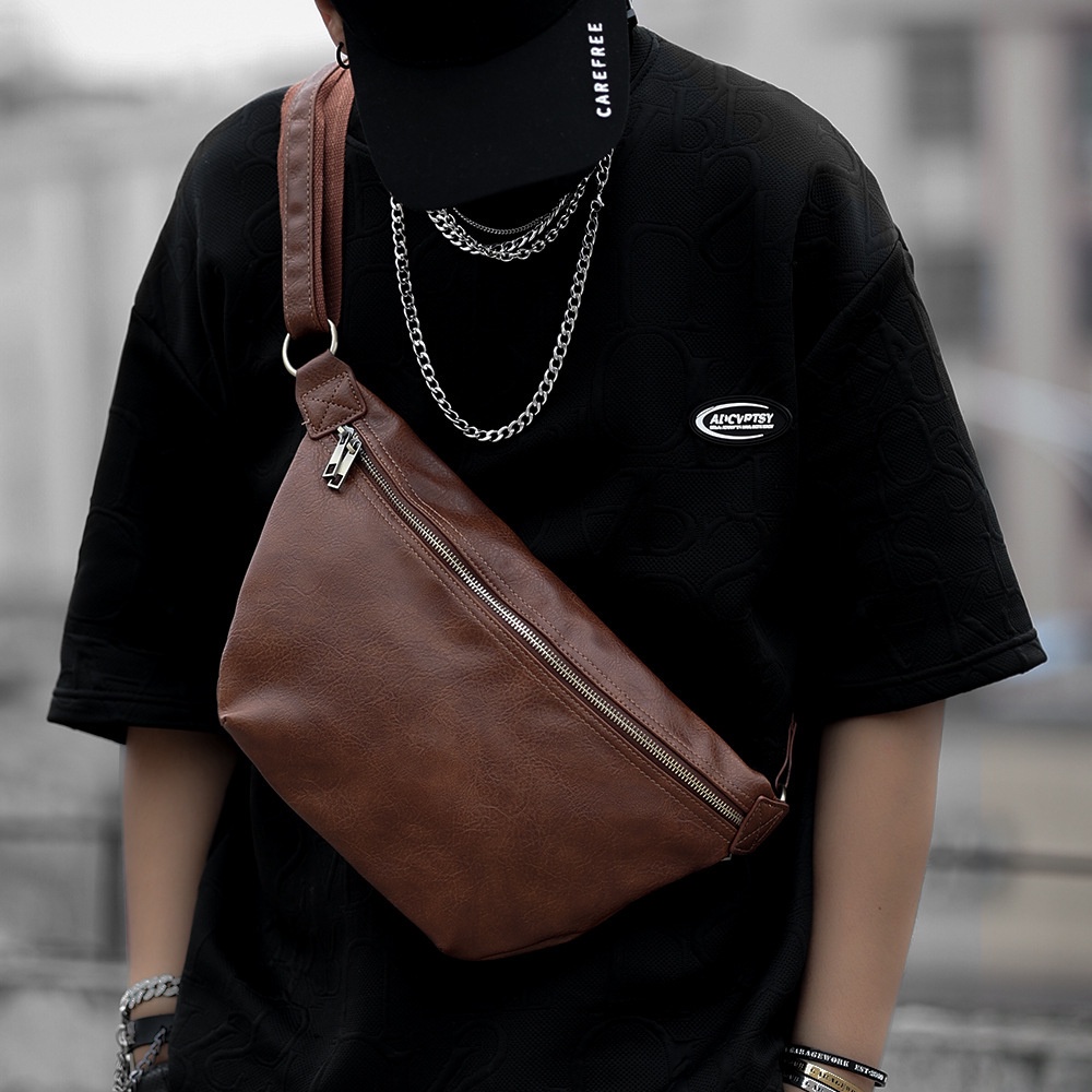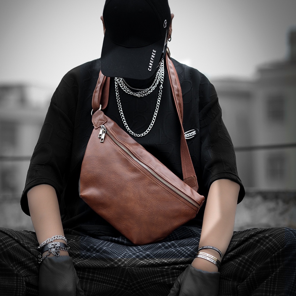 New Fashion Large Capacity Men Women Unisex Chest Pack Waist Bag Leather Crossbody Bag