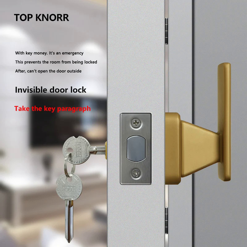 New Invisible Door Lock Single-Sided Lock With Key Single-Sided Lock Indoor Door Hidden Single-Sided Lock Golden Background Wall Door Handle Hidden Lock