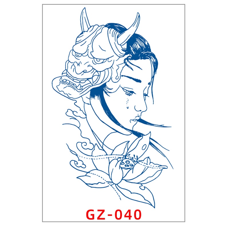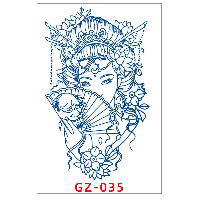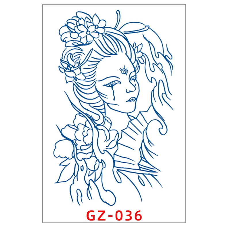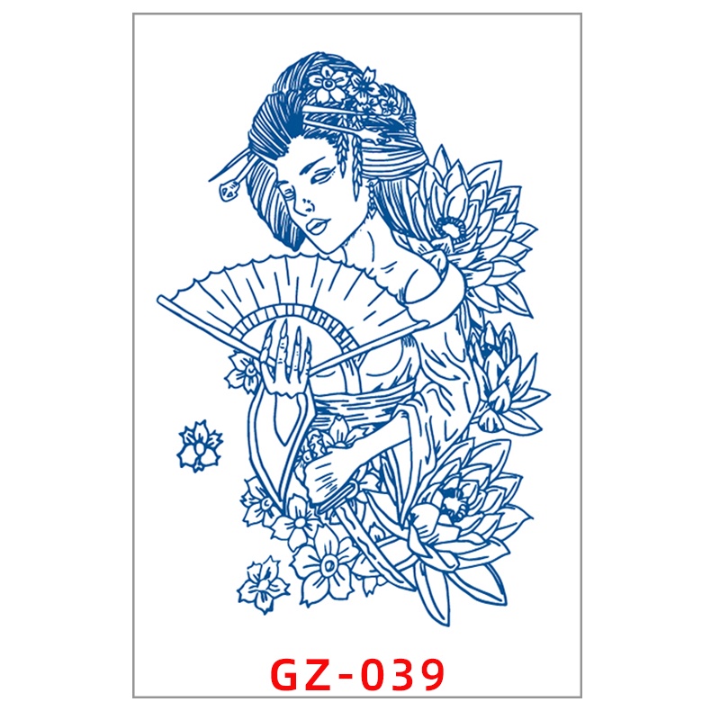 New Juice Ink Tattoo Sticker Long Lasting Lasts 15 Days Blue Flower Geisha Tattoo Body Arm Fake Temporary Tattoos Sticker