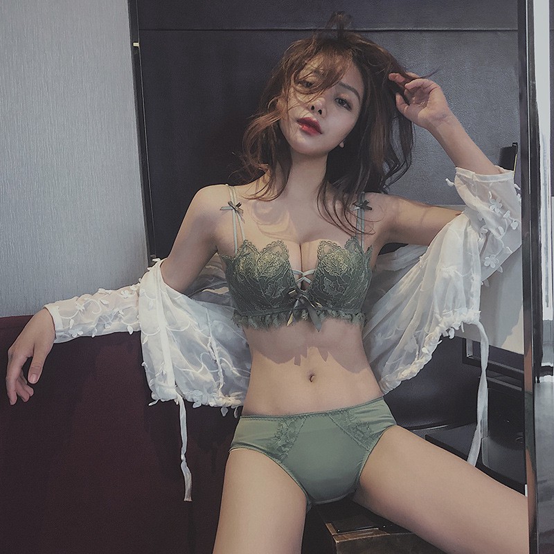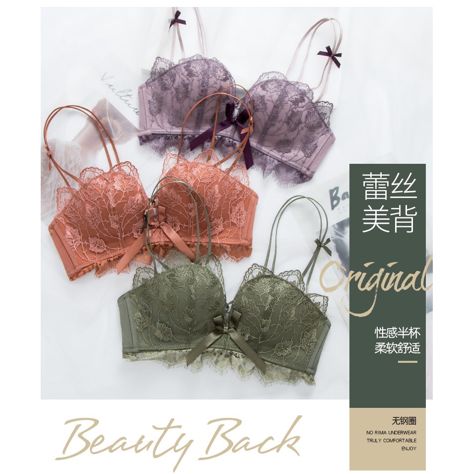 New Lace Underwear Deep V Minami-Double Shoulder Belt Pull Concentrate on High Exploding Breast Underwear Without Traces and Steel Rings Underwear with Small Chest Underwear, and close the sexy lace cross back bra set