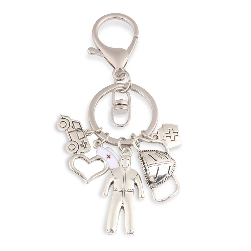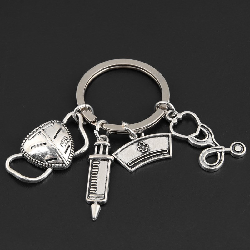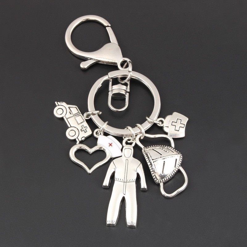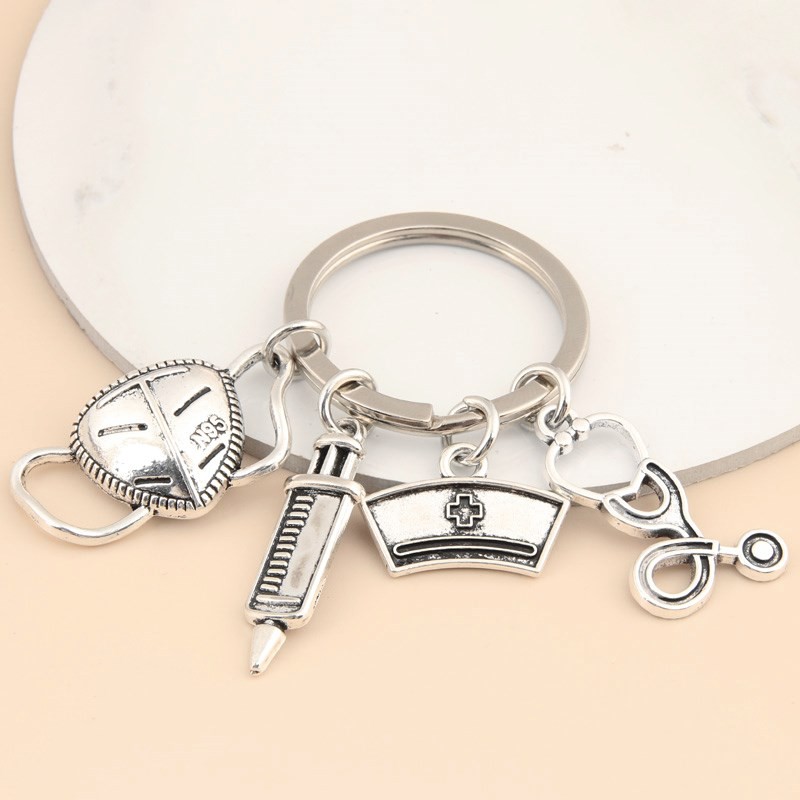 New Medical Tool Keychain Protective Suit Key Ring Ambulance Syringe Stethoscope Nurse Cap Key Chain Doctor Nurse Gift Jewelry