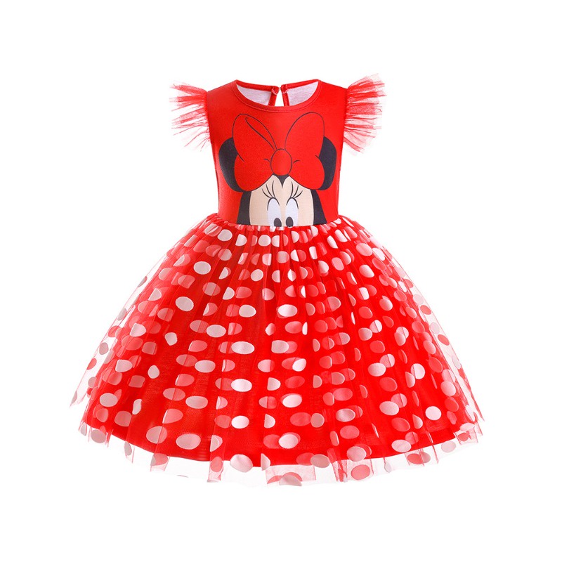 New Mesh Fluffy Cute Polka Dot Bow Girl Princess Dress Minnie Mickey Mouse Costume Children's Princess Party Christmas Kids Terno Red Dress