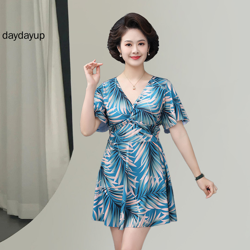 New Middle-aged and Elderly Swimwear Women Oversized Printed Skirt Swimming Suit Mom's Casual Swimsuit