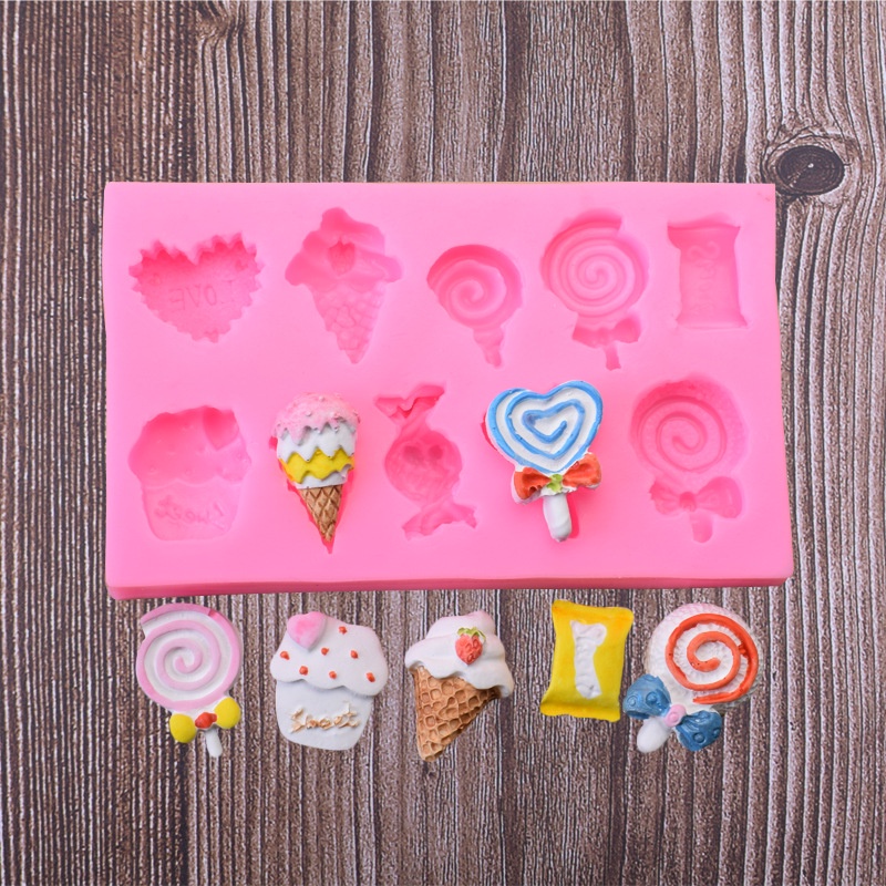 New Mini Sweet Cone Lollipop Milk Shake Candy Silica Gel Mold Cake Decoration Diy Chocolate Fondant Mold
