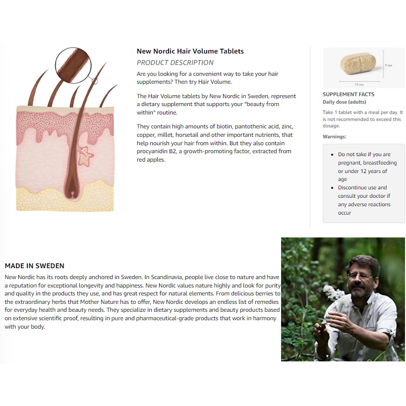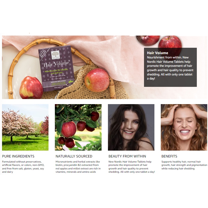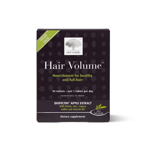New Nordic Hair Volume Tablets | 3000 mcg Biotin & Biopectin Apple Extract for Healthy Hair Growth | Reduce Thinning, Ba