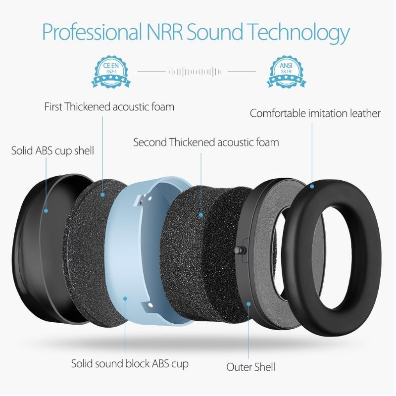 New Original 28dB Noise Reduction Safety Ear Muffs Hearing (Protection + Carrying Bag)