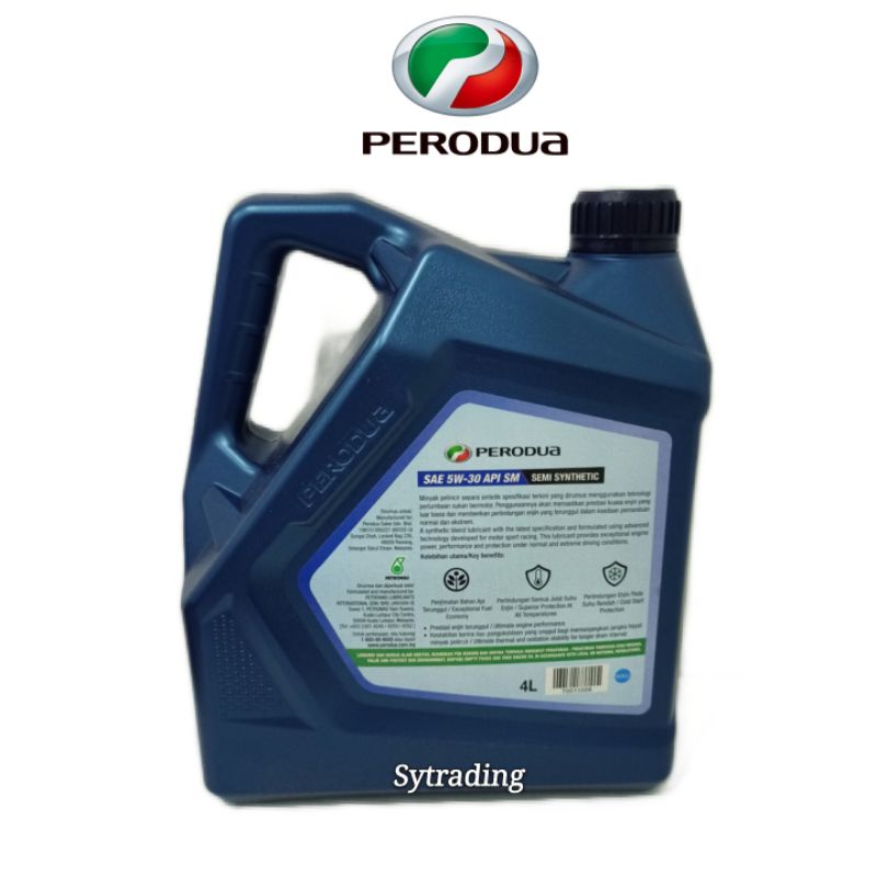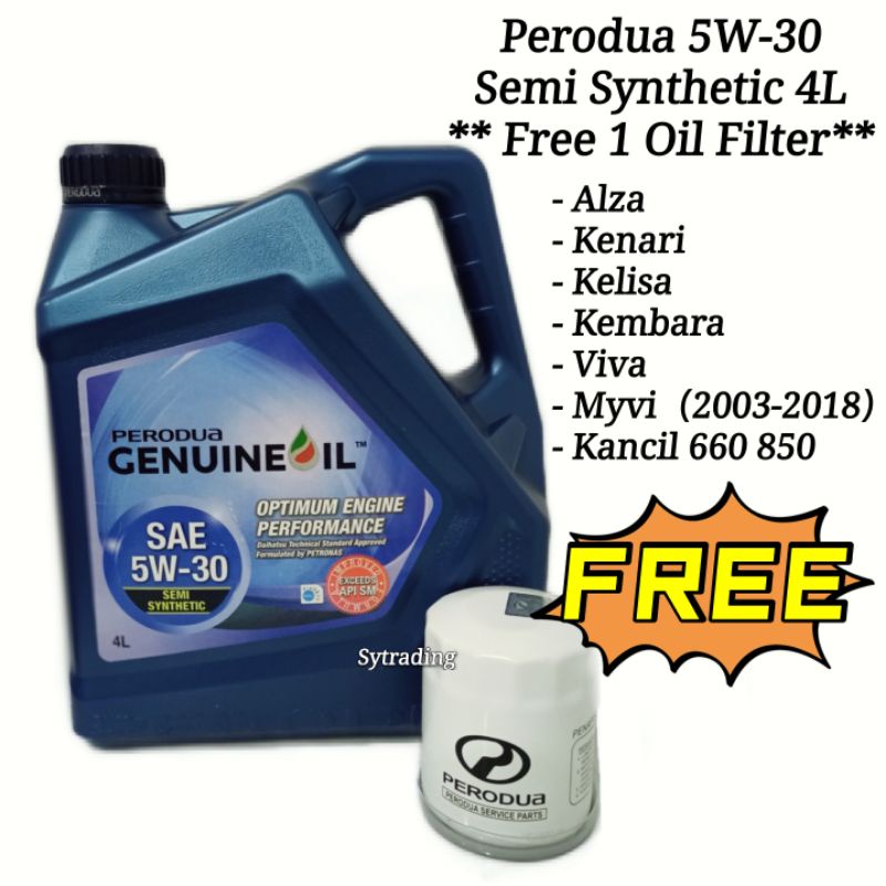 New Packing Blue Perodua 5W-30 Semi Synthetic Engine Oil 5W30 4L + FREE Perodua 00R01 Oil Filter Viva Myvi Alza