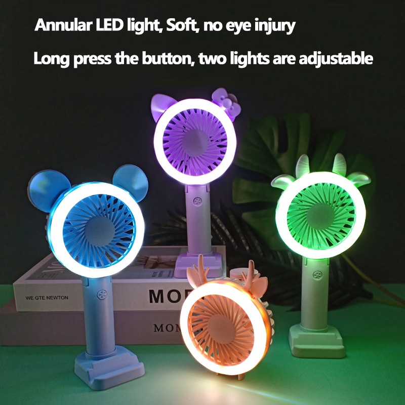 New Portable Handheld USB Charging Fan LED Light Mini Fan Cute Silent Foldable Cooling Tools Night Light Phone Holder