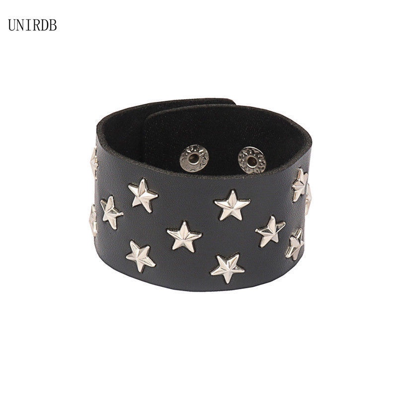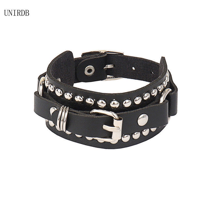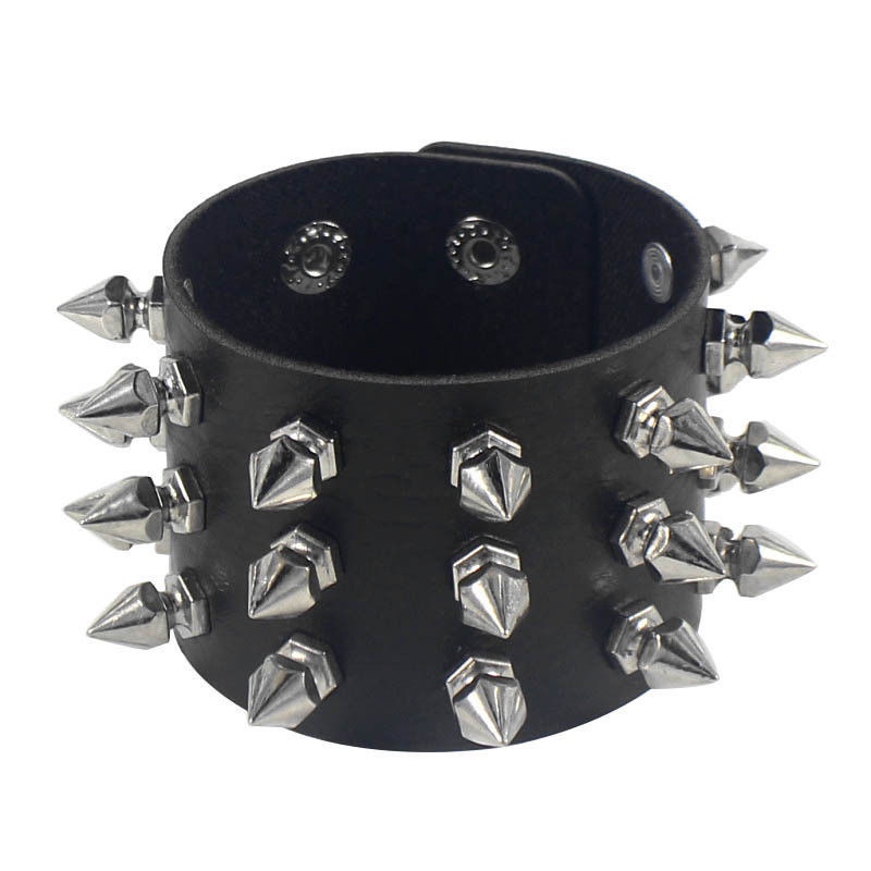 New Spiked Studded Bracelet Black Leather Rivet Punk Bracelet Cuff Wrap Bangle Snap Button Metal Wristband for Men Women