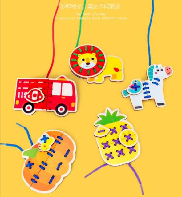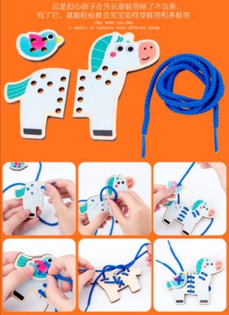 New Stock ~ Cute Wooden Threading / Early Learning Hand Motor Skills / Rope Thread / Montessori Method Toys