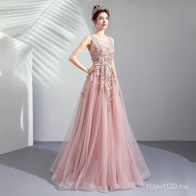 New Style Banquet Evening Dress Soft Pink Princess Bride Wedding Toast Dress JLGM