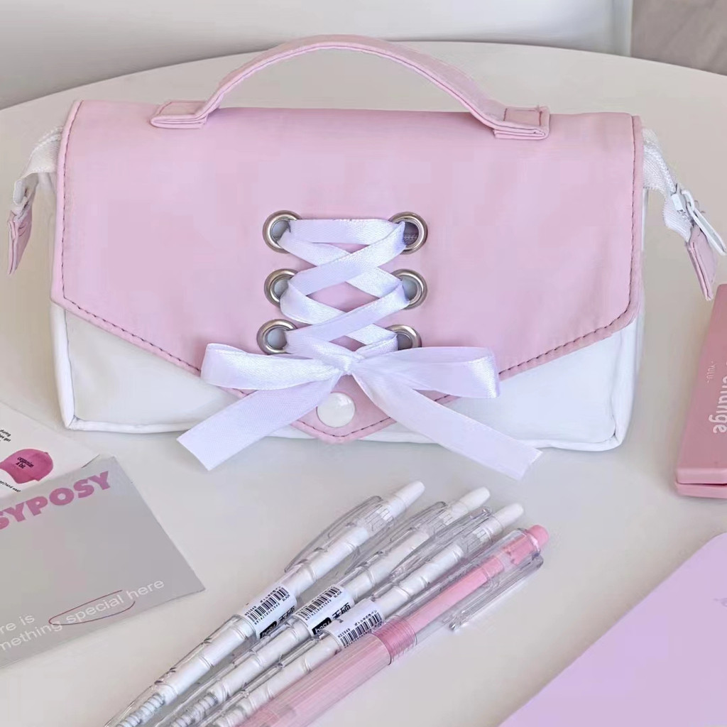 New Style High-value Ballet Style Bow Pencil Case Large-capacity Storage Bag Dirt-resistant Vertical Style