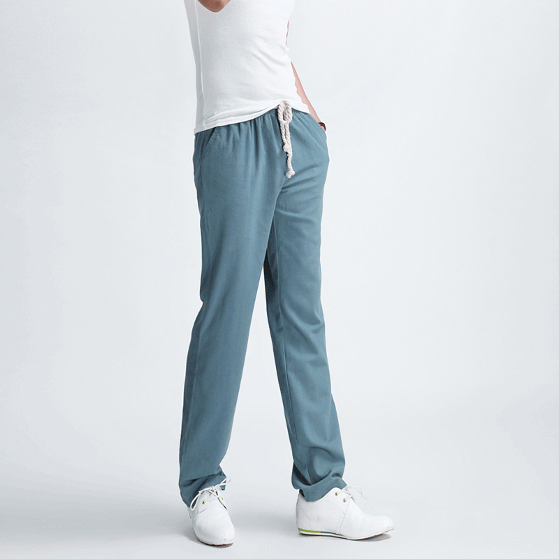 New Summer Cotton and Linen Pants Men Solid Color Lightweight Casual Loose Linen Long Pants Big Size 5XL