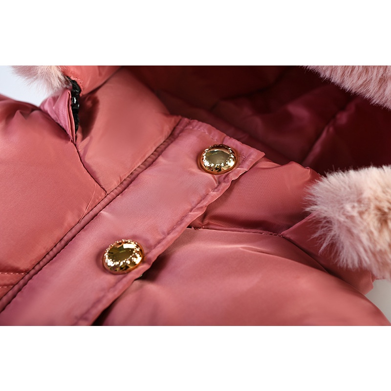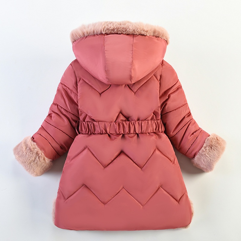 New Winter Keep Warm Girls Jacket Long Style Slim Fit Fur Collar Thick Hooded Outerwear For Girl Children Cold Protection Clothes