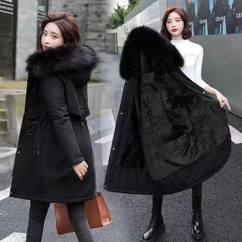 New Winter Women's plus Size Mid-Length Parka Cotton Coat Jacket 2024 Korean Style Fleece-lined Thick Fleece Coat Winter Style Hooded Fur Collar Cotton Jacket KK49