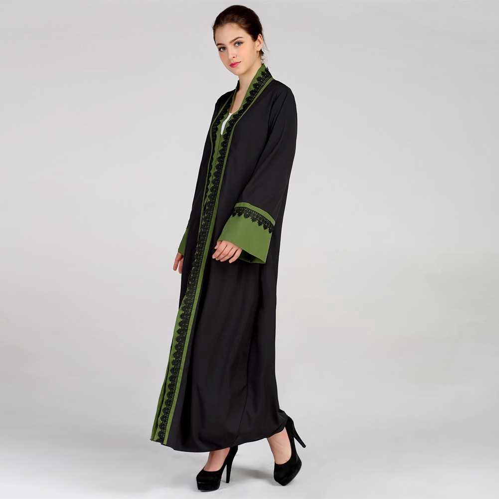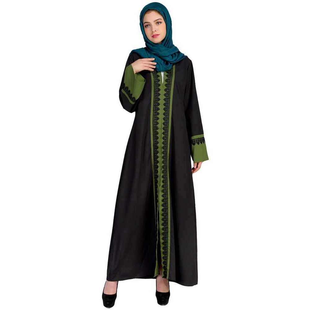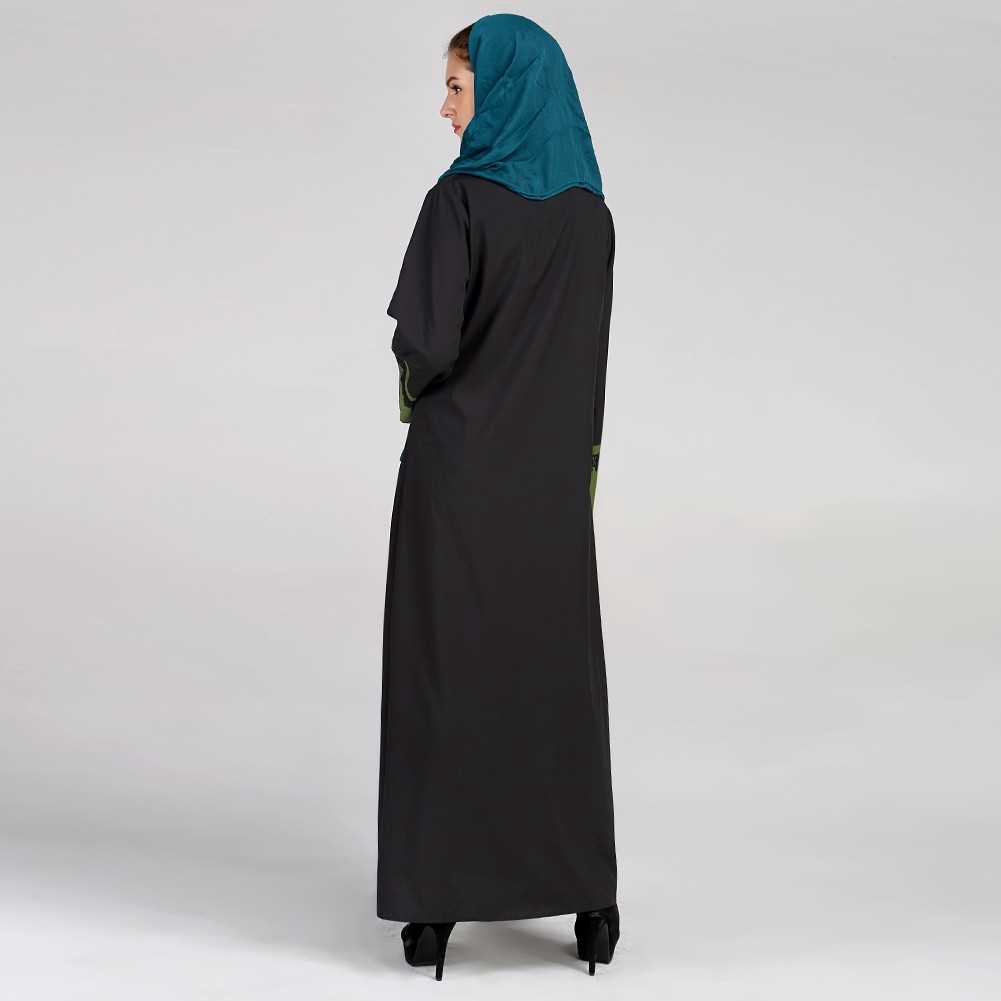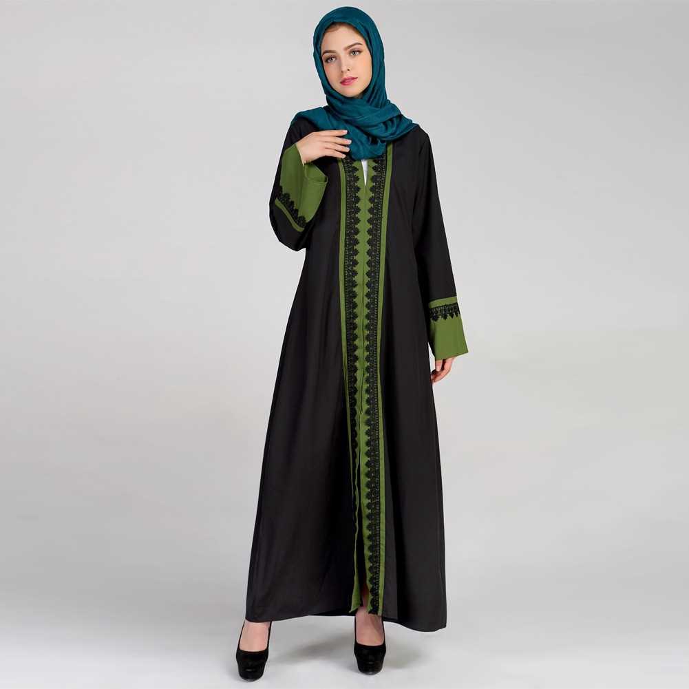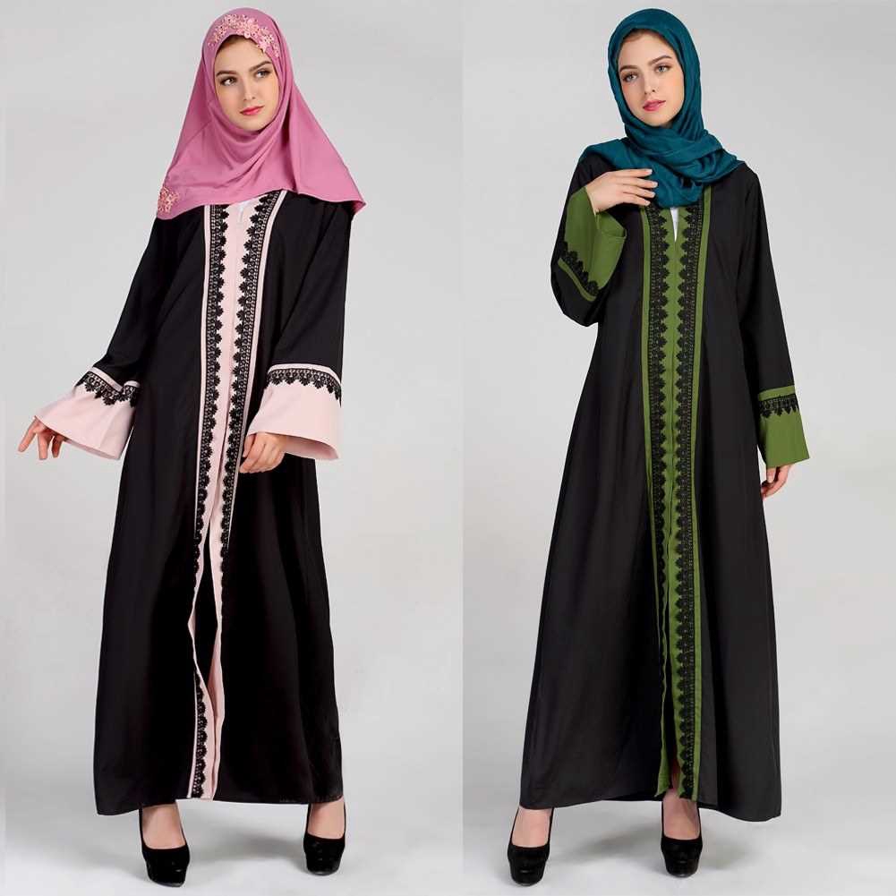 New Women Muslim Maxi Dress Contrast Color Lace Pitches Long Sleeve Abaya Kaftan Islamic Indonesia Robe Long Dress Pink