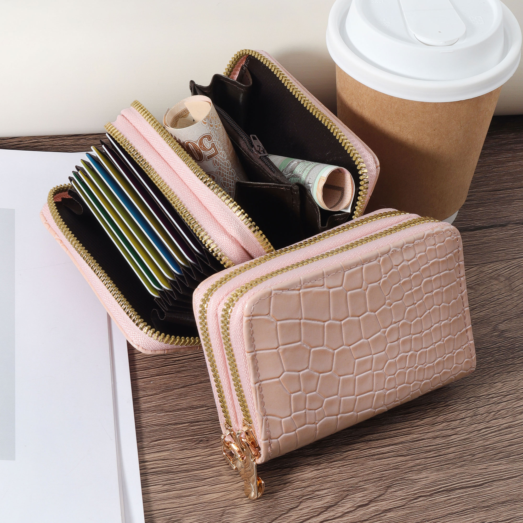 New fashionable and high-quality leather women's credit card wallet, large capacity multi card holder wallet, double zipper card holder