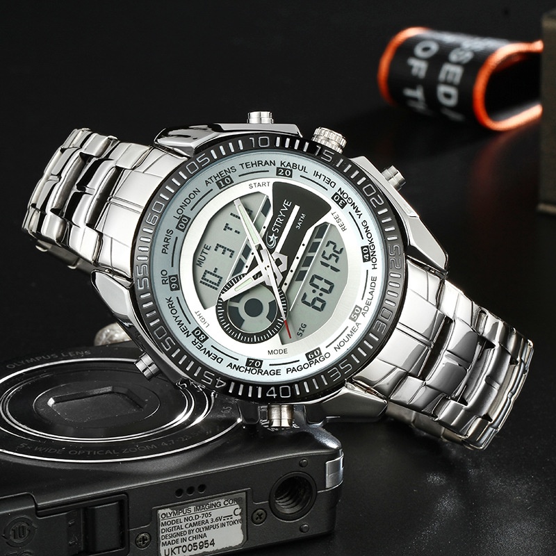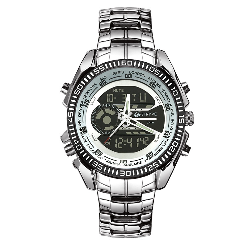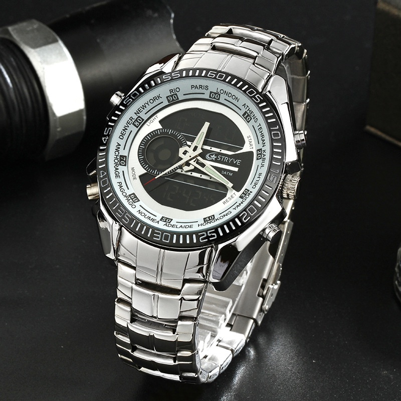 New stryve s8016 men's stainless steel business watch electronic double display waterproof calendar week Watch