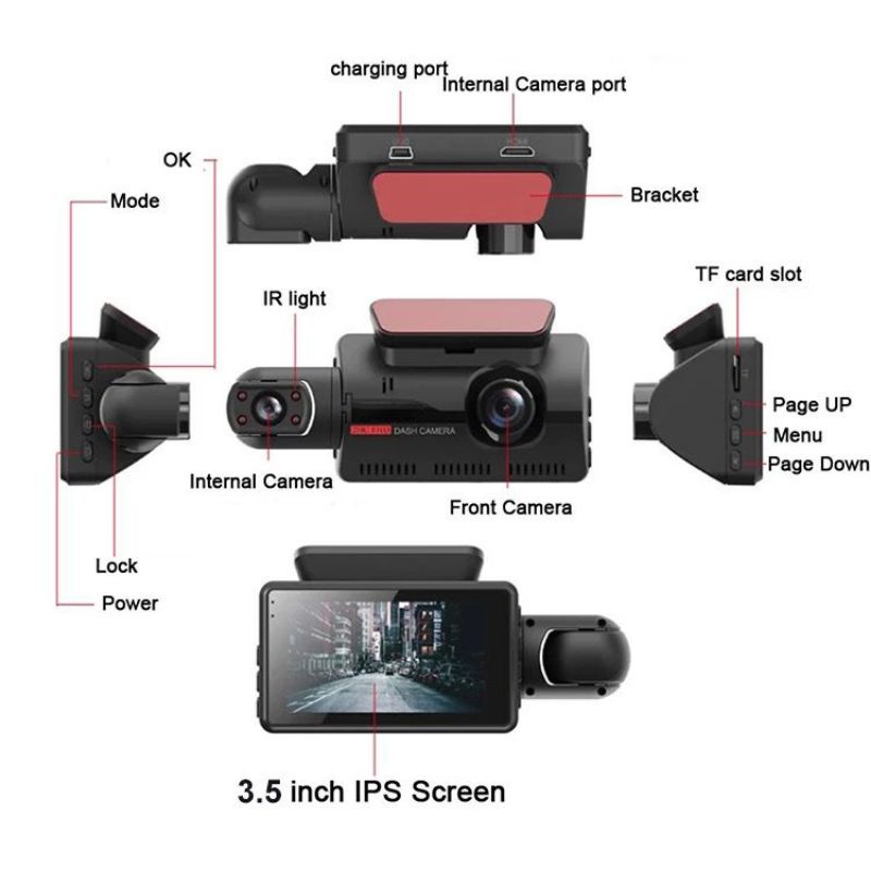 New version 3.5" Dash cam Car front and in car night vision duel lens