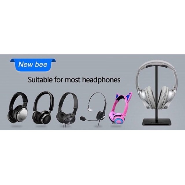 NewBee Headphone Stand Headset Holder Aluminum Supporting Bar Flexible Headrest ABS Solid Base